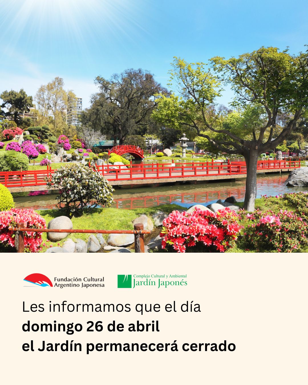 Prohibido fumar y vapear. El Jardín Japonés es un lugar libre de humo